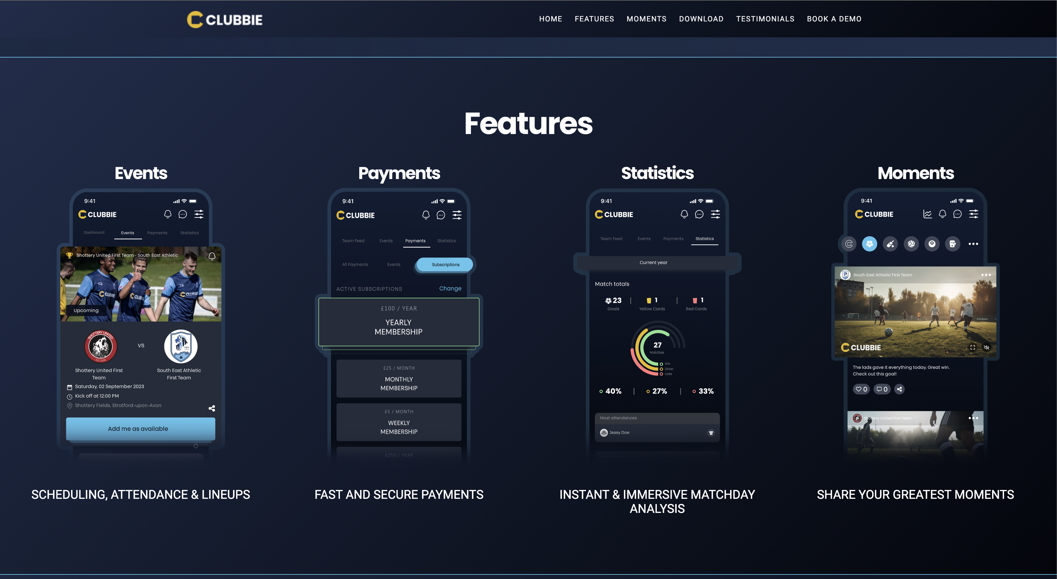 Clubbie emerged as a groundbreaking solution catering to the vibrant world of amateur sports clubs. With its comprehensive suite of features ranging from social media management to team organization and event booking, Clubbie revolutionized how sports enthusiasts interact, organize, and engage within their local communities. Designed to empower amateur sports clubs, Clubbie provides a dynamic platform for clubs, teams, and players to connect, communicate, and coordinate seamlessly. From creating video and static social media posts to managing subscriptions and organizing events, Clubbie offers a multifaceted approach to enhancing the amateur sports experience. With a focus on user-centric design and intuitive functionality, Clubbie facilitates effortless team management, event planning, and communication. Whether it's strategizing formations on the field or sharing memorable moments through multimedia feeds, Clubbie elevates the amateur sports experience.